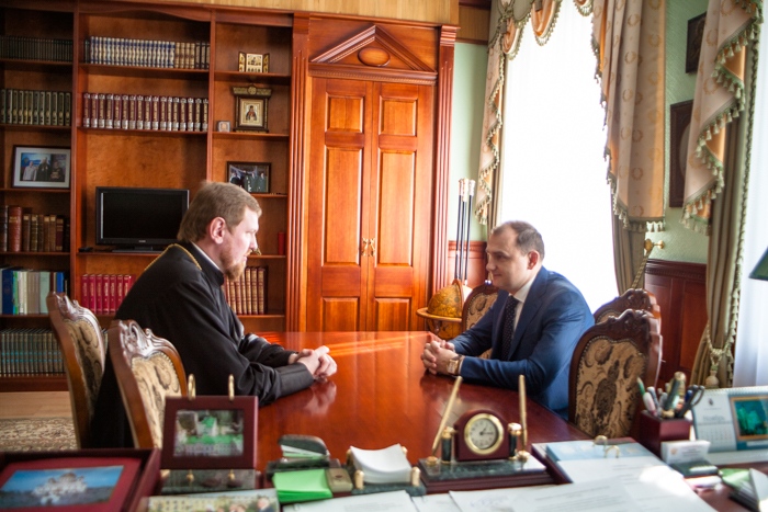Встреча митрополита митрополита Владимира с главным федеральным инспектором по Хабаровскому краю В.Г. Крючковым в ХДС 25 октября 2016 г.