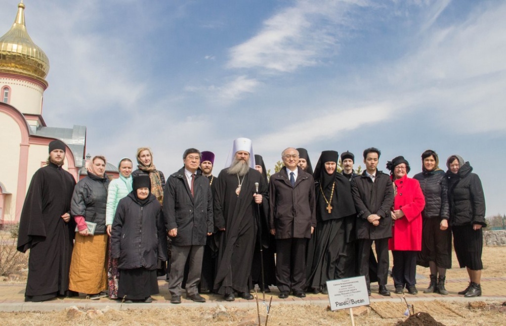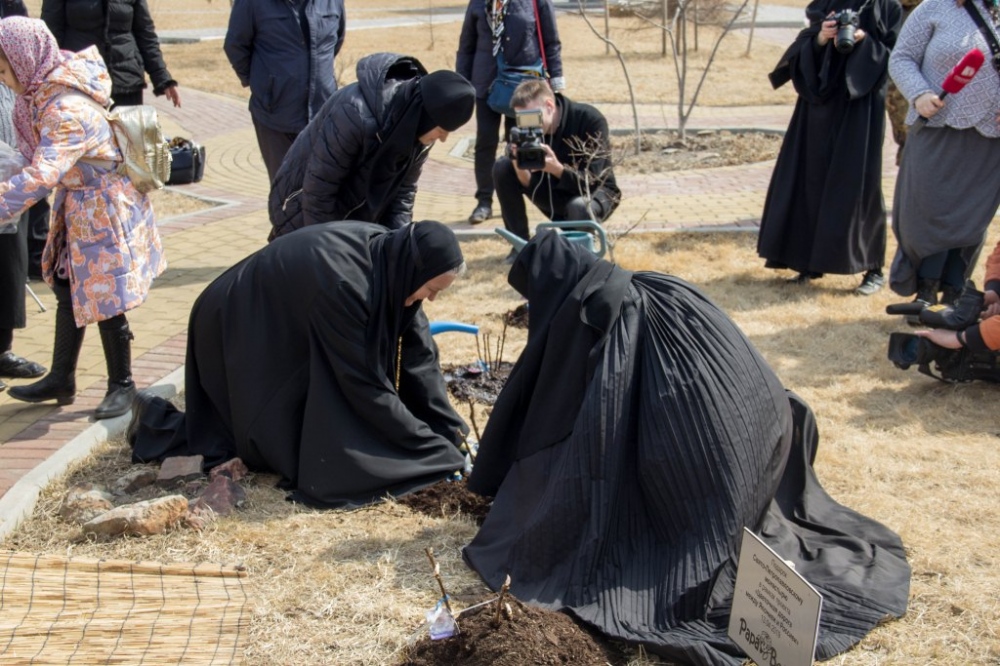 Высадка древовидных пионов на территории женского монастыря. 13 апреля 2019 г.