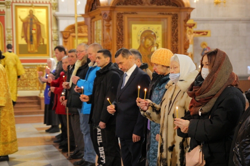 Митрополит Артемий в сослужении епископа Аристарха возглавил воскресное богослужение в кафедральном соборе 6 февраля 2022 года